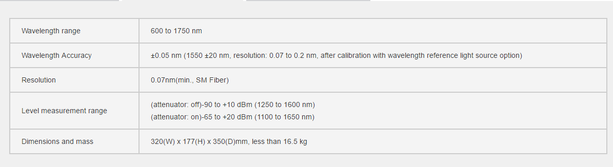 | MS9780A光譜分析儀是一種衍生光柵型光譜分析儀,用于分析 600 至 1750 nm波段范圍內(nèi)的光譜。它被設(shè)計(jì)用來支持纖芯為50/62.5 um.的光纖,可以測量LDs和LEDs的光譜。 除了用來測量LD和LED的光譜外,它還可以用來測量無源光器件的傳輸特征以及光纖放大器系統(tǒng)的噪音系數(shù)。 除了它的基本特點(diǎn)外,MS9780A衍生光柵的穩(wěn)定性和可靠性使得它很容易的就可以滿足準(zhǔn)確WDM通信測試所需要的嚴(yán)格規(guī)范,尤其在1550nm波段。 |